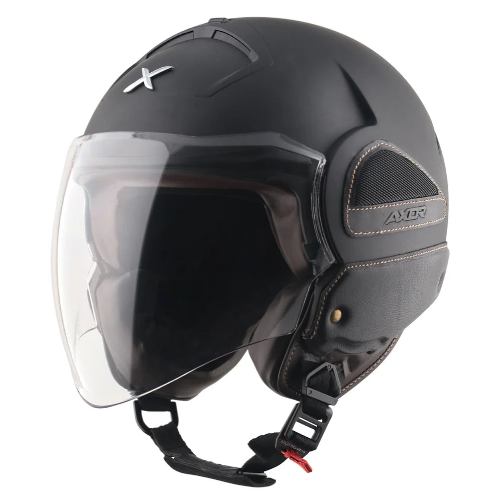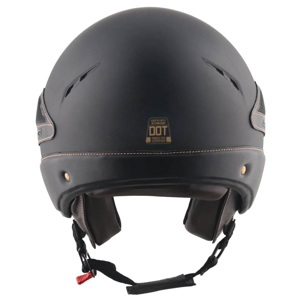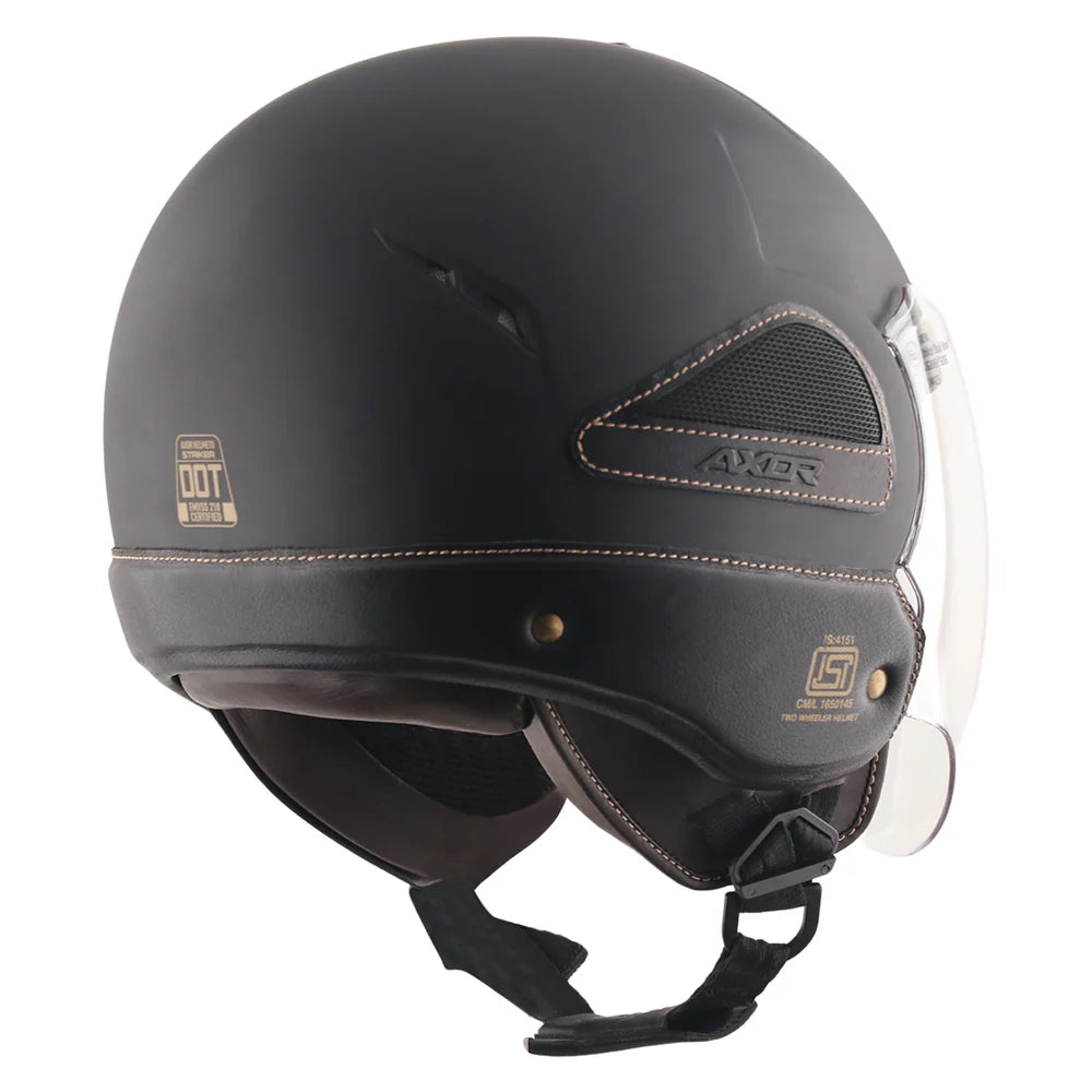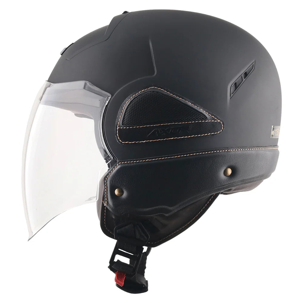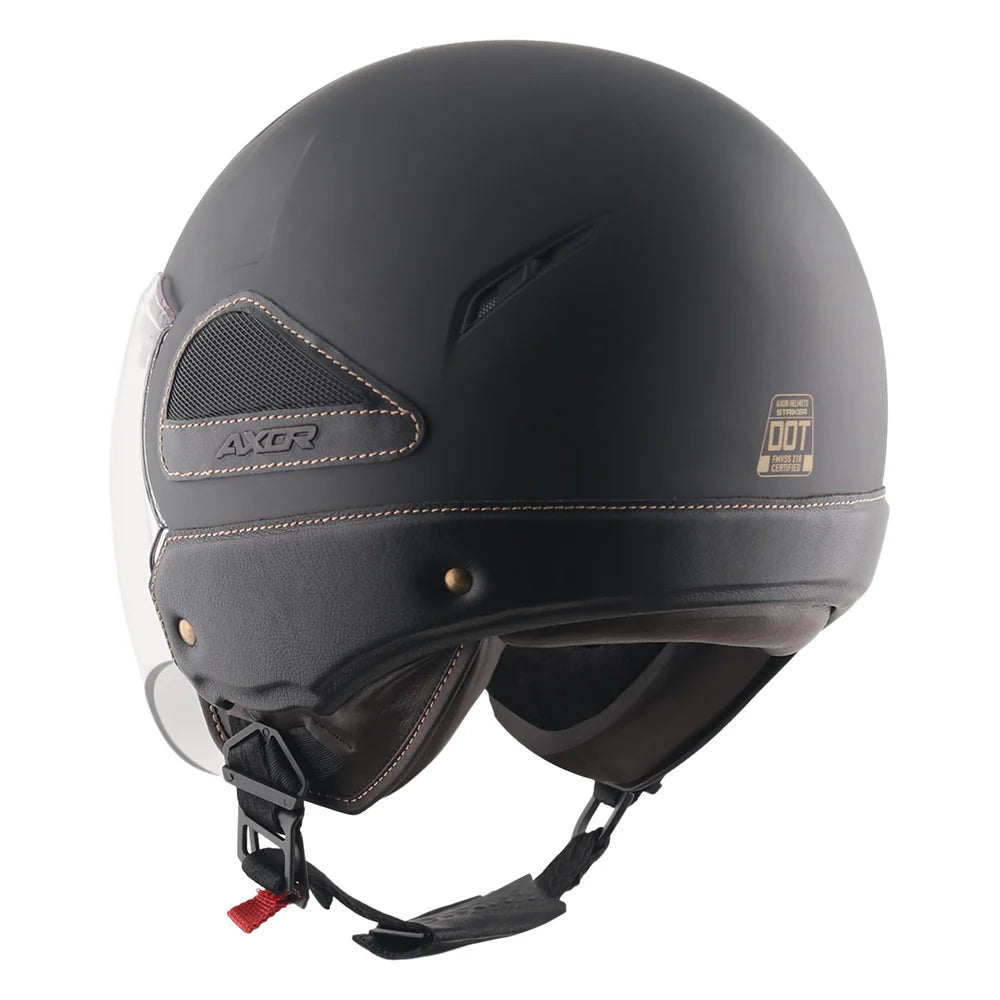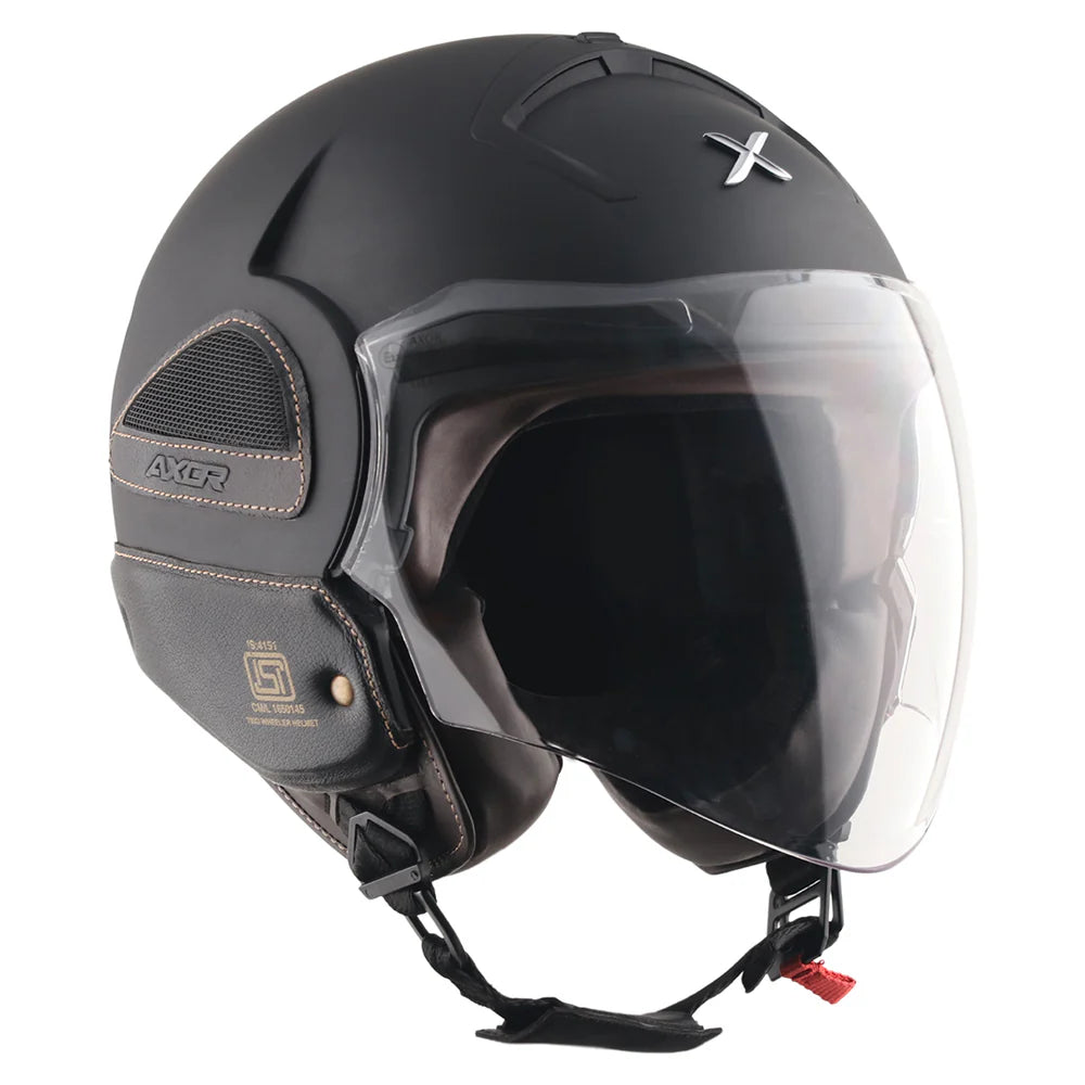 The AXOR Striker Icon Helmet combines lightweight safety and style with a fiberglass composite shell and genuine leather interiors. Certified with ISI and DOT, it features a multi-density EPS liner, hypoallergenic liner, and a double D-ring chin strap for a secure, comfortable fit. Weighing just 1150 grams, it’s perfect for riders seeking premium protection and elegance on every ride