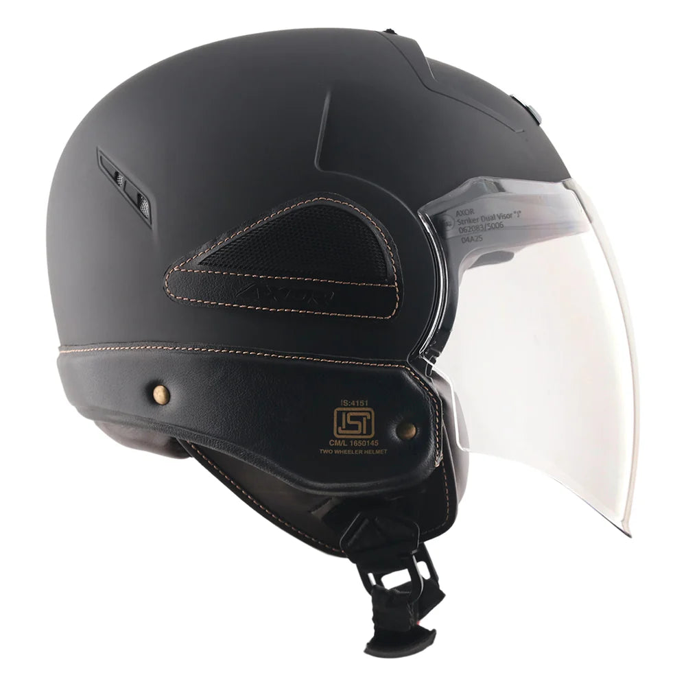 The AXOR Striker Icon Helmet combines exceptional style with top-tier safety features, making it the ultimate choice for riders who demand both performance and elegance. Crafted with a fiberglass composite shell, this helmet is lightweight yet durable, weighing just 1150 grams for added comfort during long rides. The double D-ring chin strap ensures a secure fit, while the ISI and DOT certifications guarantee premium safety standards.