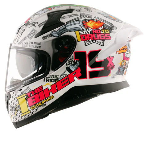 Introducing #theNineteen, the extraordinary third chapter of xBhp Axor Helmets, commemorating the illustrious 19-year journey of xBhp. As we bid adieu to our teenage years and embrace adulthood, it's time to make promises to ourselves. These pledges are artfully captured on the helmet, blending inspiring messages with dynamic graphics that embody the essence of our motorcycling adventures. The helmet's crown adopts a Russian doll motif, featuring a rider adorned with the previous two xBhp Axor helmets. Gear up for an exhilarating journey with #theNineteen, a symbol of our shared motorcycling legacy.