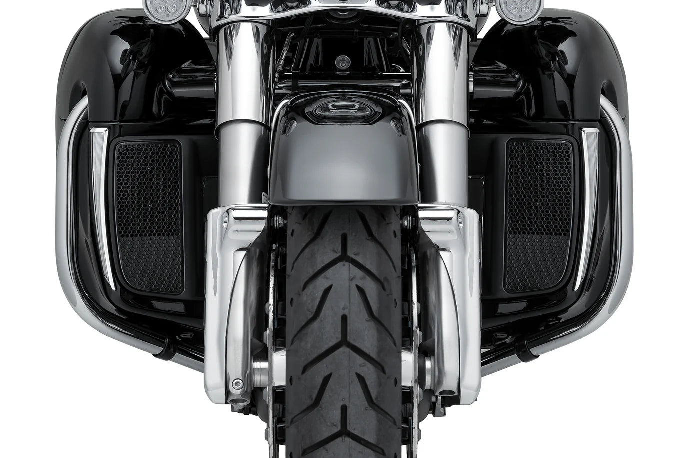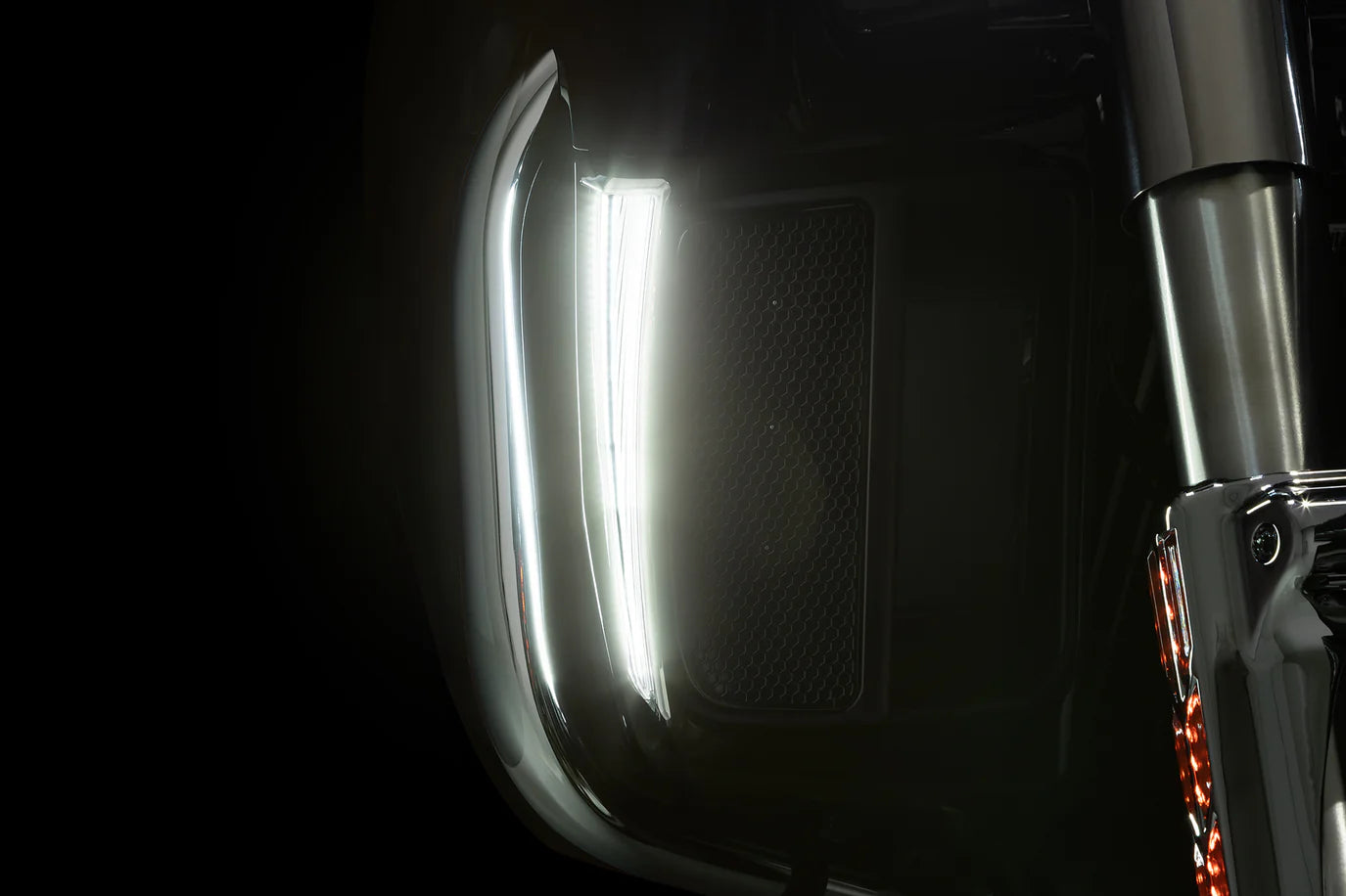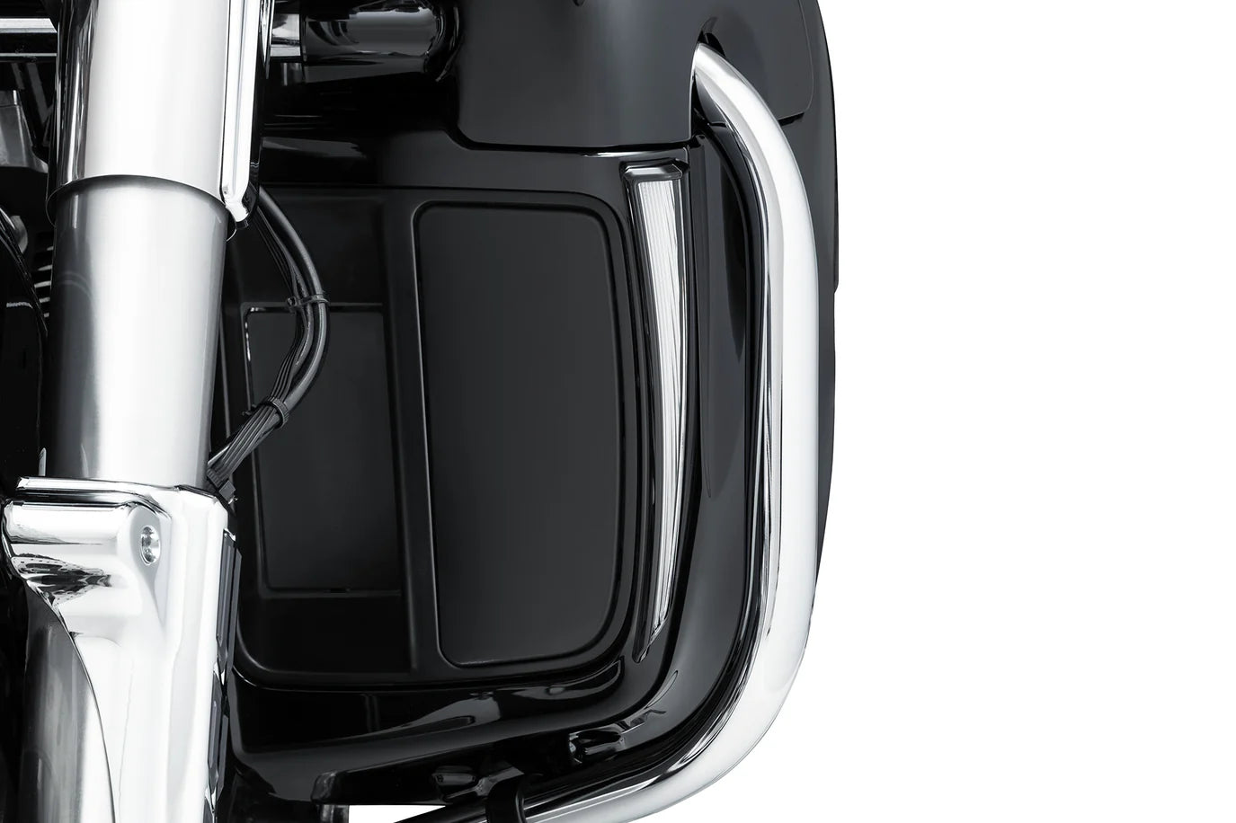 The Fang® Lower Fairing Lights offer a broad spread of light, ideal for navigating dark parking lots and maneuvering at low speeds. Complete with amber turn signals, these lights ensure enhanced visibility around the clock.