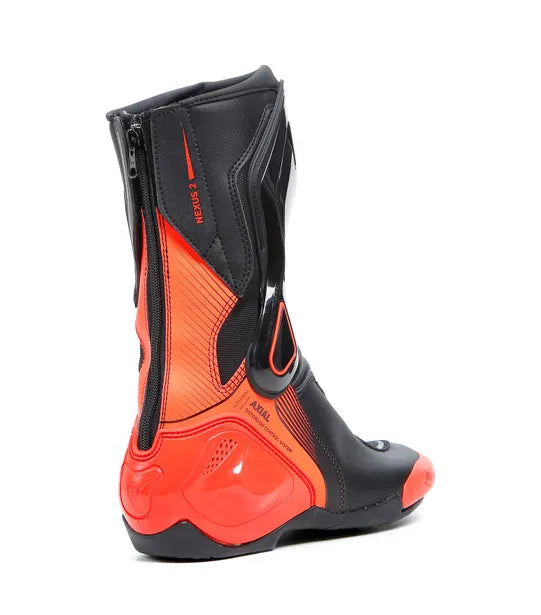 The Dainese Nexus 2 sport motorcycle boots feature a construction of microfiber and D-Stone, complemented by a nylon insert at the heel. They come with replaceable thermoplastic sliders, the exclusive Dainese Axial Distortion Control System, and nylon inserts on the heel, ensuring superior protection, utmost comfort, and lightweight design.