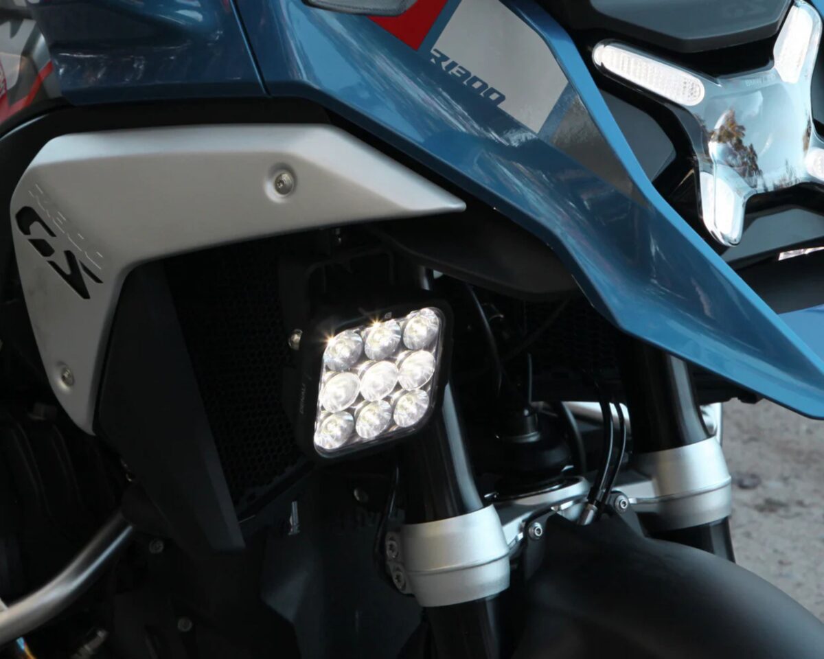 The Denali DL9 Auxiliary LED Lights – White are the most powerful and rugged lights in the DL-Series lineup, designed to obliterate darkness and provide unmatched visibility for riders who demand the best. Each pod pumps out a staggering 7,650 lumens, delivering 15,300 lumens per pair, all packed into a robust 9-LED square housing optimized for heavy-weight ADV and touring bikes.