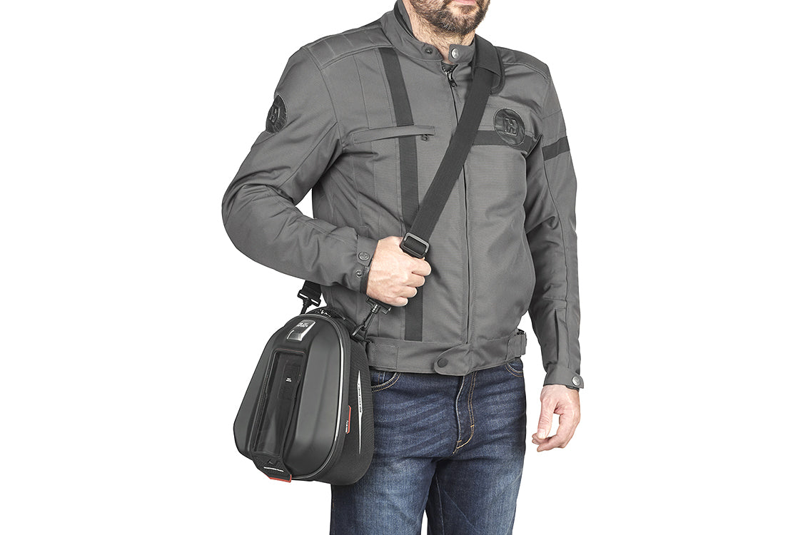 GIVII ST611 Tanklock Tank Bag, boasting a 6-liter capacity and a thermoformed shell for durability. This versatile bag offers side reflective inserts for enhanced visibility, a convenient handle for easy transport, an inner case designed for sunglasses, and an adjustable shoulder strap for comfortable carrying. Its transparent smartphone window allows for easy access, while the high-visibility rain cover ensures protection in adverse weather conditions. With zipper pulls compatible with safety locks, this bag provides both convenience and security for your belongings on the road.