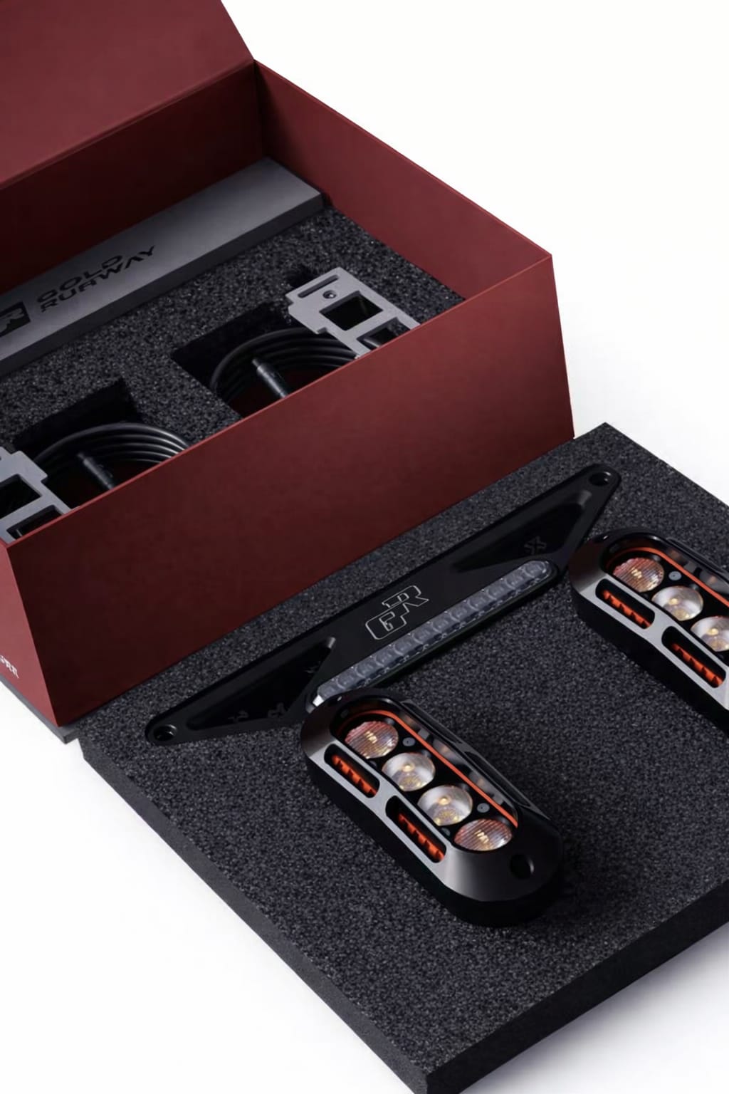 Upgrade your BMW R1300 GSA with the Gold Runway M4 Kit Set, featuring daylight under beak lighting, premium construction, and precision fitment for style, safety, and adventure-ready performance.