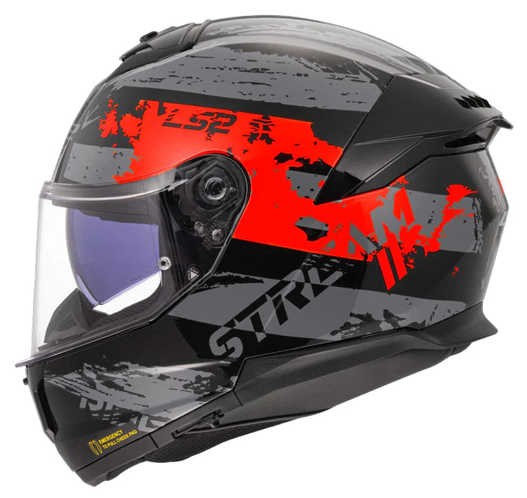 The LS2 Stream II is a full-face motorcycle helmet that seamlessly blends advanced safety features with modern design, making it an ideal choice for riders seeking both performance and comfort. Constructed from LS2’s proprietary Kinetic Polymer Alloy (KPA), the helmet boasts a lightweight yet robust shell, weighing approximately 1550 grams (±50g). This material integrates microscopic aramid fibers with high-end polymers, enhancing energy absorption and impact resistance without the ricochet effect associated with inferior materials. The helmet's aerodynamic design is complemented by a rear spoiler, ensuring dynamic flow-through ventilation to keep riders cool and comfortable.