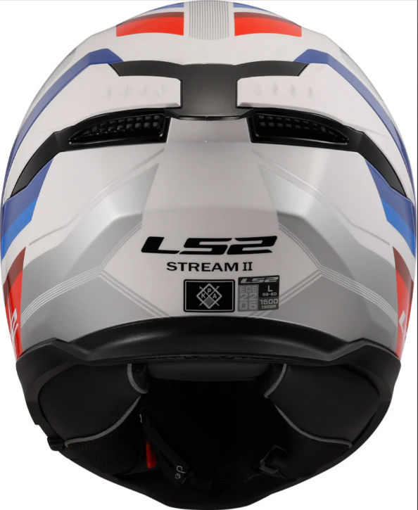 The LS2 Stream II is a full-face motorcycle helmet that seamlessly blends advanced safety features with modern design, making it an ideal choice for riders seeking both performance and comfort. Constructed from LS2’s proprietary Kinetic Polymer Alloy (KPA), the helmet boasts a lightweight yet robust shell, weighing approximately 1550 grams (±50g). This material integrates microscopic aramid fibers with high-end polymers, enhancing energy absorption and impact resistance without the ricochet effect associated with inferior materials. The helmet's aerodynamic design is complemented by a rear spoiler, ensuring dynamic flow-through ventilation to keep riders cool and comfortable.