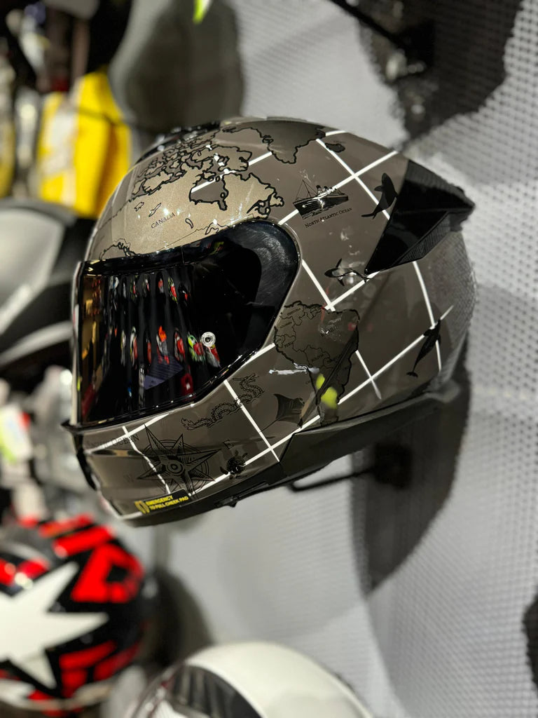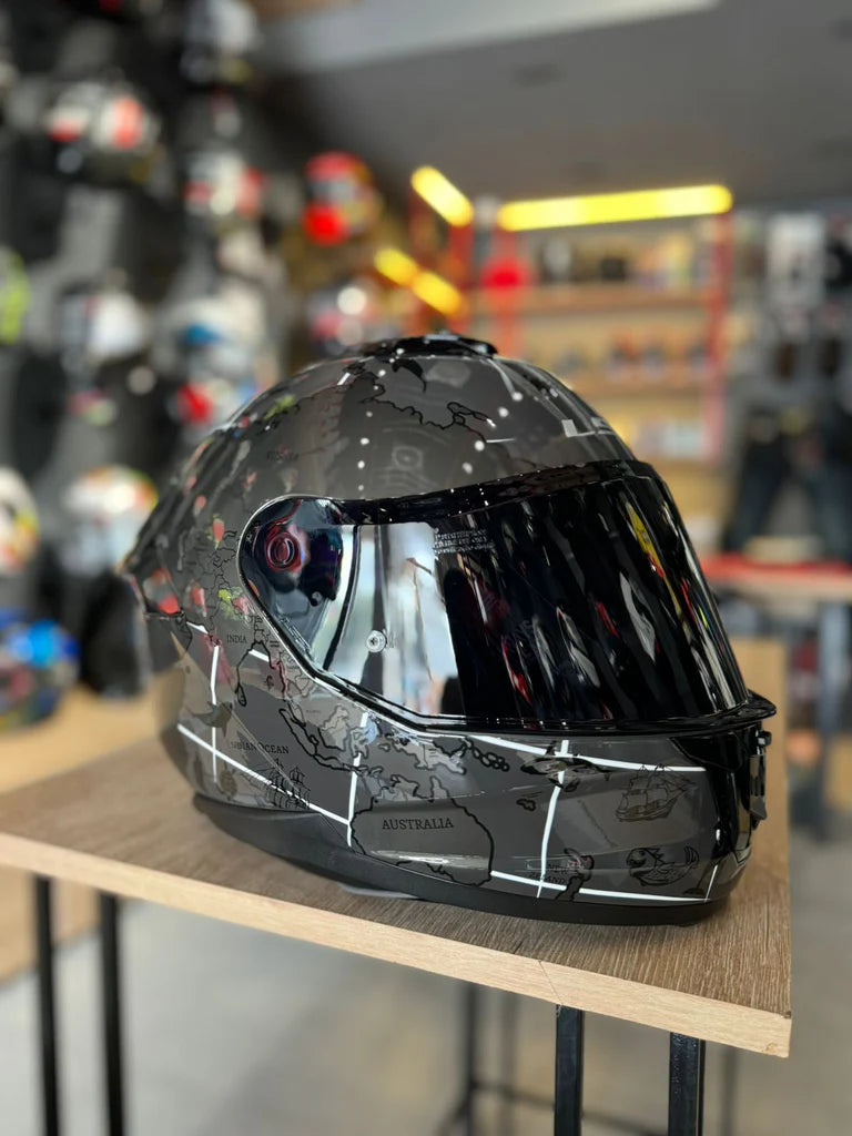 The visor system is engineered for clarity and convenience, equipped with a Pinlock® 70 MaxVision™-ready shield, a built-in sun visor, UV protection, scratch resistance, and an easy quick-release mechanism. Combining functionality with touring practicality, the FF320 Stream II Worldmap is a dependable and feature-rich helmet for daily riders.