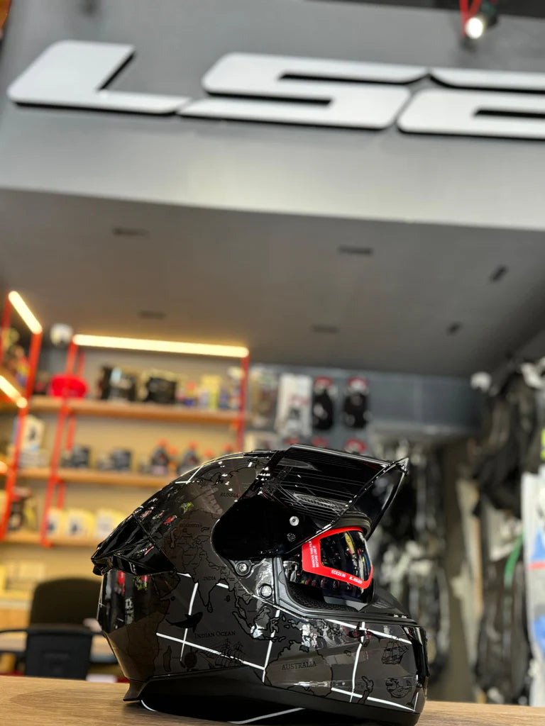 The LS2 FF320 Stream II Worldmap 7C Black is a feature-rich touring helmet designed for everyday comfort and safety. It offers excellent ventilation, a dual-visor system, and a secure fit, making it ideal for city and highway riding.