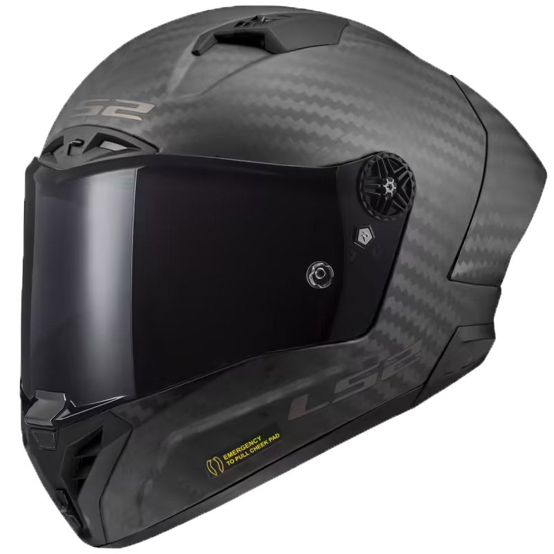 Crafted from 100% carbon fiber, the LS2 Carbon Racing Helmet combines exceptional strength with an ultra-lightweight design, weighing just 1280g (±50g). It is available in three shell sizes (XS-S / M-L / XL-2XL) to ensure an optimal fit and balance across all head sizes. Certified to the highest standards with FIM homologation and ECE 22.06 approval, it features advanced safety elements including an emergency release cheek pad system, a secure double D-ring closure, a multi-density EPS liner for enhanced impact absorption, and a visor lock for added protection at high speeds. Ventilation is maximized with front, chin, and rear intake vents, a spoiler extractor, channeled EPS, and an internal deflector to maintain a steady airflow and reduce fogging. Inside, the helmet offers superior comfort with X-Static© Silver fabric that is hypoallergenic, breathable, and fully removable and washable, while laser-cut padding ensures a precise, pressure-free fit. The wide, scratch- and UV-resistant visor comes Pinlock® 120 MaxVision™ ready, supports tear-offs, and features a quick-release system for easy and efficient swaps.