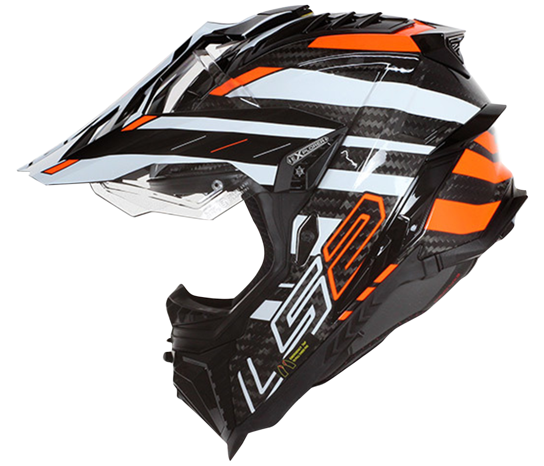 Top of the line in LS2's enduro helmet lineup and one of the best off-road helmets for demanding riders of large enduros. The latest generation carbon shell offers very low weight and high safety. Integrated sun visor for a comfortable and safe ride during the day, at dusk, and at night.