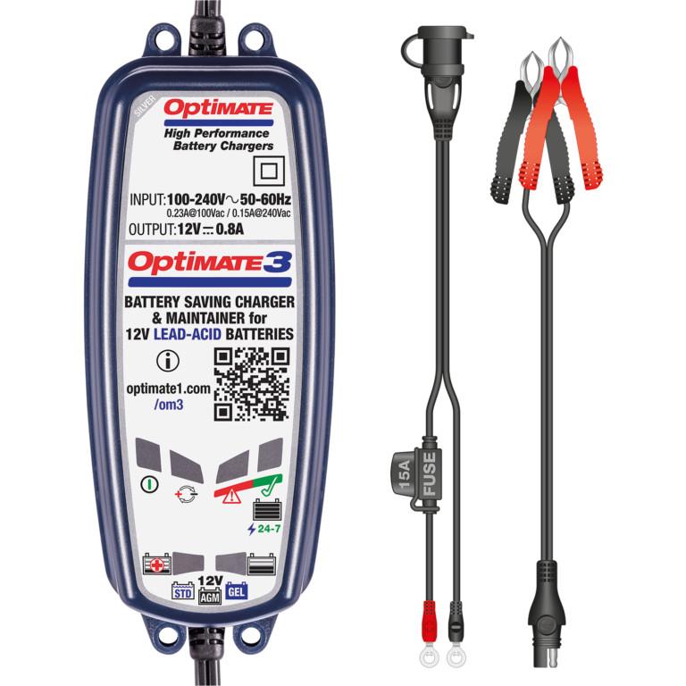 The OptiMate Charger is a smart, automatic 12V battery maintainer designed for AGM, GEL, and standard lead-acid batteries from 2.5–38Ah. It charges, tests, recovers, and maintains your battery with a safe 0.8A output, even reviving low-volt batteries from 0.5V. Built for indoor or outdoor use with a weatherproof design, global 100–240V input, and essential safety protections, it provides reliable long-term battery care for motorcycles, scooters, and small vehicles.