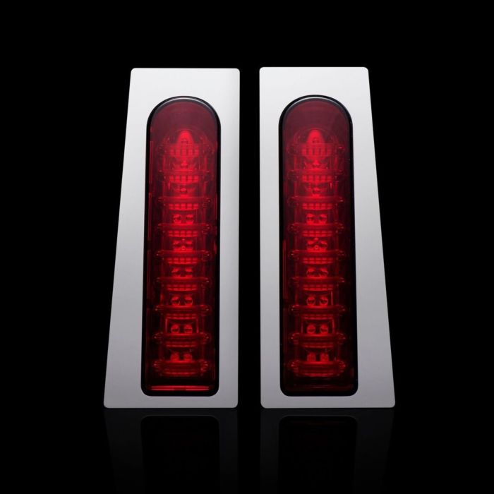 Introducing a sleek solution for Harley-Davidson® touring model fender supports. These units feature 9 running light pipes, providing a modern style with full contrast turn signal or brake/turn options. Sealed behind red or smoked lenses with chrome or gloss black trim, they offer automotive-grade quality. Installation is quick and easy with the included plug-and-play adapter.