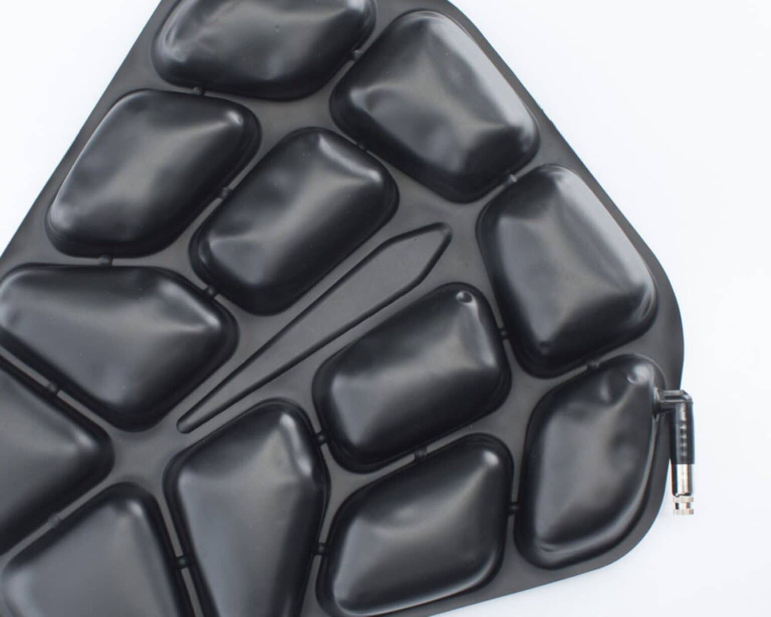 The multiple interconnected air compartments act as mini shock absorbers, dampening vibrations and improving ride quality. The cushion features a breathable synthetic leather cover for durability and comfort.